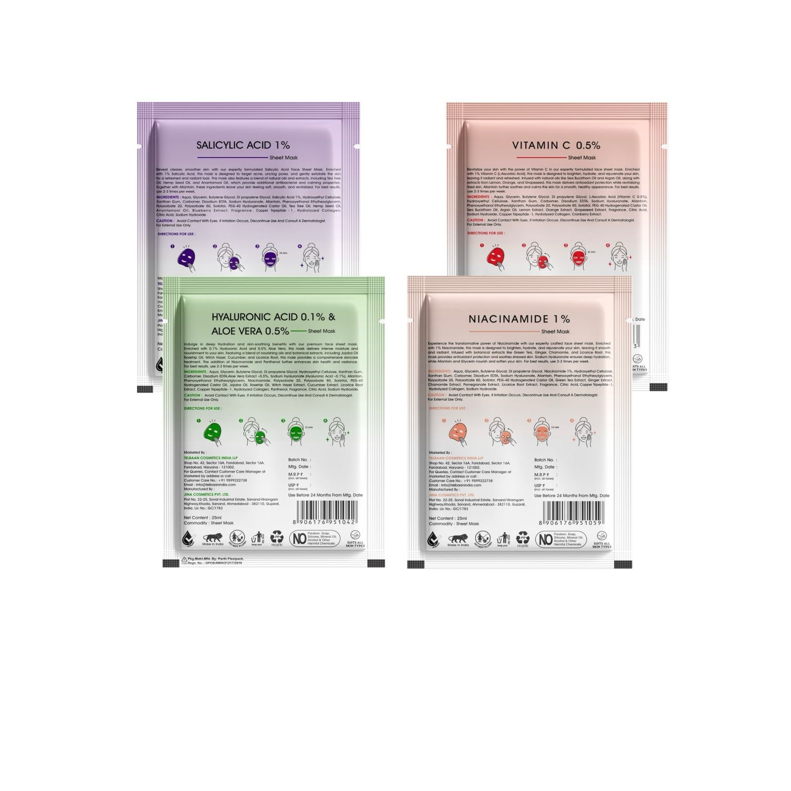 Manufactured by : Jina Cosmetics Pvt. Ltd. Plot No. 22-25, Sanand – Viramgam Highway, Khoda, Sanand, Ahmedabad, Gujarat - 382110